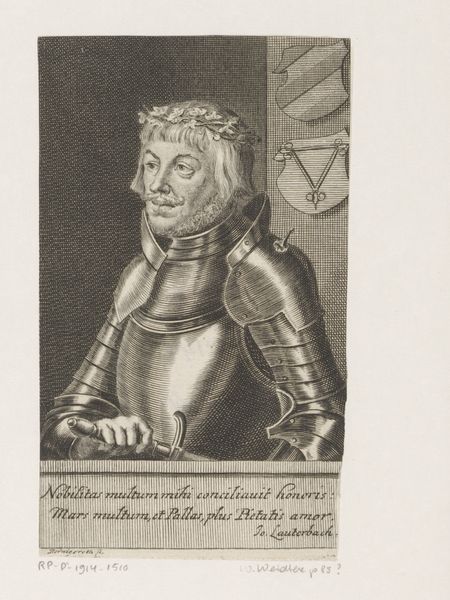 Curator: Hans Baldung, working in the Northern Renaissance style, created this print titled "Portrait of Charles V" sometime between 1500 and 1545. What strikes you about it? Editor: There's a stillness, a formal quality that almost feels frozen in time, even a bit unsettling. It has this strong sense of... well, not exactly "power" as we think of it now, but rather a weight, a density to the whole composition. The stark contrasts in the lines create a sense of intensity. Curator: Absolutely. As a print, this work reflects a shift in art's accessibility during that era. Suddenly, imagery wasn’t solely confined to wealthy patrons or religious institutions. We begin to see the rise of art as a political tool and as propaganda. Editor: Precisely. And consider the deliberate choice of black and white – it underscores the absolute nature of authority and control during that time. He’s presented with heraldry – practically dripping with it – literally showing the insignia of power and wealth. The work asks, "Who has the power to determine what's represented and whose voices get to be heard?" Curator: Baldung strategically uses detail. Notice the lines of the fur trim, the delicate details within his jewelry—it's clearly meant to showcase the immense wealth of Charles V and the Holy Roman Empire at that time. Editor: Yes, and let’s also look at the gaze, just slightly off. This makes me consider his authority: Charles seems presented more as a symbol than as a fallible man. Curator: Indeed, printmaking also meant these images were replicated and disseminated. Consider the implications. Charles V could be—through works like this print—everywhere in the empire, solidifying his power across diverse regions. Editor: Thinking about the legacy, artworks like this serve as powerful reminders of the past, but we have the responsibility to approach them with critical understanding. How do we challenge the narratives imposed onto us? How do we consider whose story wasn’t centered? Curator: Very well put. Analyzing such work requires a continuous reevaluation of both its historical context and its present relevance. Editor: For sure, this image makes me question the systems that allowed—and sometimes still allow—certain images and ideas to circulate so freely, and to acknowledge and give voice to marginalized histories.