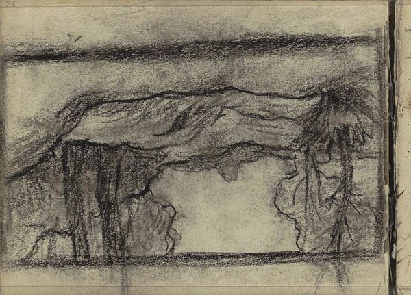 Curator: This charcoal drawing, titled "Stooks and a Peasant Stacking Sheaves," was created by Vincent van Gogh in 1885. You can find it here at the Van Gogh Museum in Amsterdam. Editor: It’s interesting, the darkness is so striking, it almost feels somber, not exactly the celebratory harvest scene I’d expect. There’s a weight to it, like the burden of the labor itself is the main subject. Curator: I feel that. The heavy use of charcoal, and even the frottage technique where he rubbed the charcoal to create texture, evokes a sense of the gritty reality of peasant life, especially during that time. Editor: Exactly! It moves beyond just depiction. There’s something to be said about his commitment to portrayals of the working class. In those years, it was a deeply radical, social statement. Did he make it to shed light on social injustice, on the hardships faced by those who literally sustained society through agriculture and physical toil? Curator: Absolutely. He wanted to give dignity to these laborers, representing a reality often glossed over. The individual peasant becomes almost one with the landscape in Van Gogh’s art. The texture feels woven between land and body. Editor: It almost renders invisible these laborers! It becomes almost painful to consider that even today there are similar inequities across agriculture worldwide! One cannot avoid confronting, in some ways, how some bodies are still treated as extensions of the soil they till. Curator: It’s uncomfortable, to be sure, but he doesn't shy away from showing the unvarnished truth, the heavy cost. He captures that rawness so vividly through these charcoal marks and somber tonalities. He reveals that these aren't just piles of harvested grain; these stooks embody hours, days, lives given over to this labor. Editor: It reminds us how deeply connected our survival still is to land, body, and agricultural production, whether it be the 19th century or today. Curator: Seeing "Stooks and a Peasant Stacking Sheaves" reminds us that our contemporary comforts are tethered to difficult realities and to our responsibilities towards making our food production practices, more fair. Editor: A moving and unsettling piece of commentary from Van Gogh, as many of his works tend to be. It really forces reflection, even now.