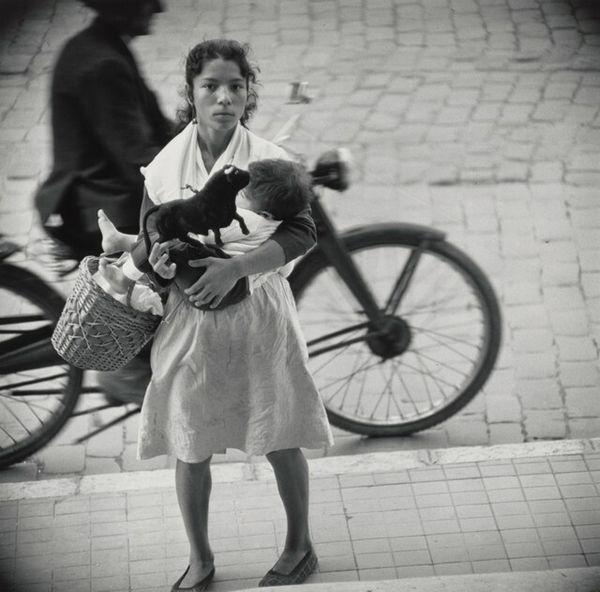 This photograph, "Logar, Afghanistan" by Ed Grazda, captures a moment in time, rendered in shades of gray. Grazda is known for his social documentary photography, which often examines the intersection of culture, identity, and place. The grainy texture feels almost tactile, like you could reach out and feel the rough surface of the walls, the worn fabric of the men's clothing. It's the kind of texture that comes from film, from a particular way of seeing and recording the world. The man on the left, with his tweed jacket and bicycle, seems almost out of place next to the armed figure, creating a tension that pervades the image. I keep thinking about how the shadow mimics them, a ghostly echo of their presence. This image reminds me of some of the work of photojournalist Don McCullin, who similarly captured the harsh realities of conflict. But, ultimately, Grazda's photograph stands on its own, a testament to the power of photography to capture complex human stories with nuance and depth.