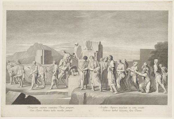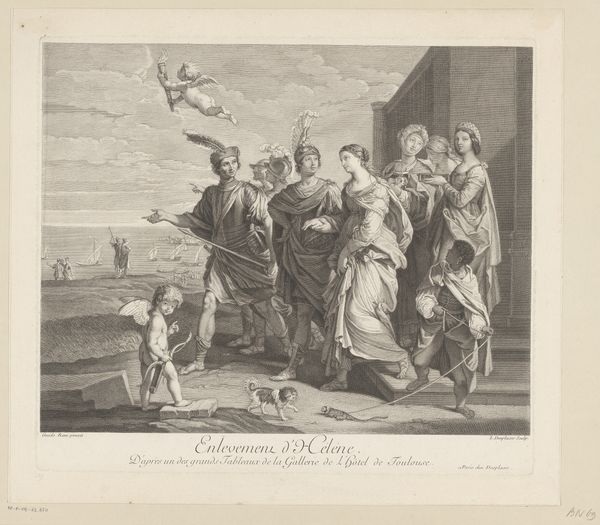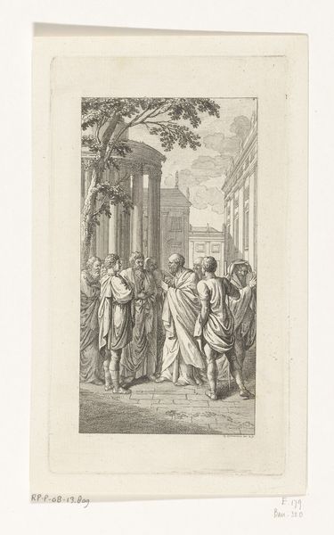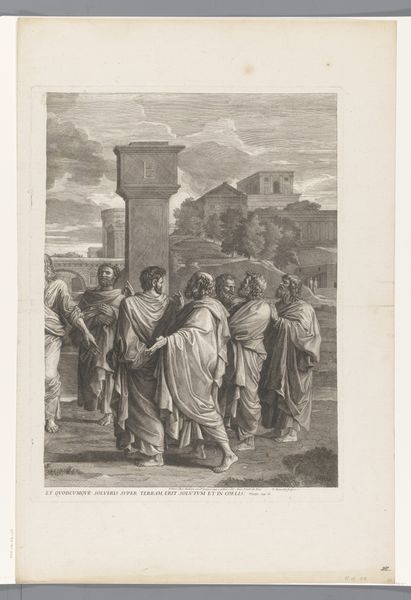 This print by Jean Pesne, likely made in France in the late 17th century, depicts Christ handing the keys to Saint Peter. The keys symbolize Peter's role as the first Pope and the foundation of the Catholic Church. Prints like this played a crucial role in disseminating religious imagery during the period of the Counter-Reformation, reinforcing the power and authority of the Church. Note the classical architectural elements in the background. These allude to the Vatican's self-conscious embrace of the Roman Empire's legacy. The print would have been part of a larger visual culture used to inspire faith and reinforce social hierarchies. Understanding the social context of this image requires looking at the history of religious institutions, the role of art in shaping beliefs, and the political dynamics of 17th-century Europe. Scholarly resources in art history and religious studies can provide valuable information to reveal the complex relationship between art, religion, and power.