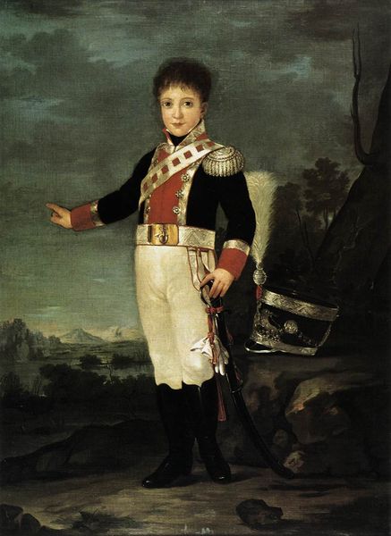 Francisco de Goya’s portrait of the Duke of San Carlos presents a full-length figure set against a dark backdrop, creating an immediate contrast that brings the subject forward. The Duke's black attire, richly ornamented with gold embroidery, is cinched with a vibrant red sash, drawing the eye through the vertical composition. Goya masterfully uses color and texture to convey status and character. The precise rendering of the Duke’s garments, complete with medals and fine details, signals his rank. Yet, there's a tension between the Duke's dignified posture and the subtle imperfections in his face. This duality reflects Goya’s broader engagement with Enlightenment ideals and his critique of power. Here, the artist balances formal portraiture with a nuanced observation of human nature, challenging the viewer to look beyond the surface of representation. It asks us to think about what it means to capture the complexity of an individual within the rigid structures of social expectation.