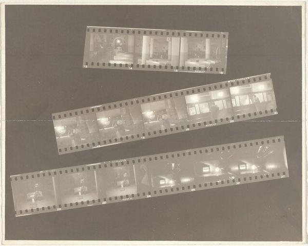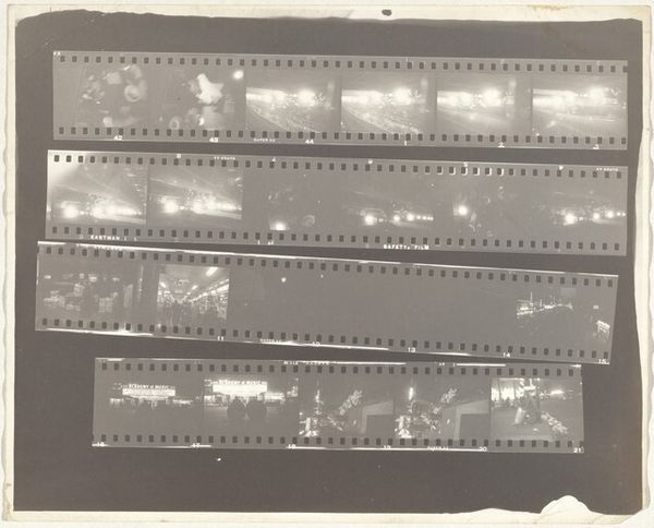 Robert Frank created this photographic work, "Early New York City no number", using gelatin silver. The layout of these three strips of film is really interesting; the way Frank arranges these moments from early New York, it's like he’s creating a storyboard or a visual poem. The monochrome palette gives it this timeless feel, almost like looking at memories. I'm drawn to the middle strip, those frames showing "14th ST." It’s so simple, almost banal, yet it captures something essential about the city. The texture of the film itself—the grain, the slight imperfections—adds so much depth. It reminds me of the work of someone like Cy Twombly, who also found beauty in the raw, imperfect marks of process. Frank's willingness to embrace the accidental, the fleeting, makes this piece so compelling. It’s not about perfection; it’s about capturing the messy, vibrant energy of the city.
