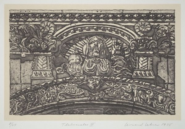 This is Leonard Lehrer’s 1975 print, Tlalmanalco VI. Notice the carved heads, recurring along the archway. These grotesque masks are a tradition with ancient roots, intended to ward off evil. In ancient Greece, such masks were linked to Dionysian rituals, embodying the duality of life and death, joy and despair. The exaggerated expressions—a grimace or a scream—aren’t merely decorative. They are apotropaic, designed to frighten away malevolent spirits. We see echoes of these protective figures in Roman architecture and, later, in the gargoyles of Gothic cathedrals. These stone figures served as guardians, channeling subconscious fears into tangible forms, safeguarding sacred spaces. Consider how this primal impulse, to protect oneself from unseen forces, persists through centuries. The grotesque, then, becomes a potent symbol of humanity’s enduring effort to control the chaotic forces of the world, a visual echo resonating through time.