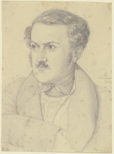 Curator: Looking at this drawing, one is immediately struck by the artist's focused gaze and evident attention to detail. It's Eastman Johnson's self-portrait, dating from around 1850, rendered with delicate strokes of pencil on paper. What are your first impressions? Editor: Immediately, I think of a daguerreotype trying to break free from its own stillness. It’s so intimate, this self-examination frozen in graphite, but there's a fragility that transcends mere technical skill. Curator: Exactly. Consider that the mid-19th century was a time when the burgeoning middle class increasingly demanded portraiture, but outside formal painted commissions, drawings allowed artists to explore their identities more freely. This piece certainly conveys such exploratory intimacy. Editor: You can almost feel Johnson wrestling with his self-image, translating himself for the world. I see it in the contrast between the sharply defined eyes, full of self-assuredness, and the more vaguely rendered clothing, as if the outer trappings were less important than his inner essence. He doesn’t portray a persona, only the person. Curator: Right. Beyond this, it is also an exploration of light. Academic art demanded facility with line and value, and Johnson shows his mastery. How interesting that a style so connected to established institutions can become a site for revealing vulnerable, interior thoughts. Editor: Perhaps the rigid techniques become tools to really reveal that vulnerability? Like holding a mask up close, so you see every pore, every crack. Makes you consider the public role of the artist, their participation in society and how their intimate, interior expression plays with, or against, that. It's interesting to note he did a few images reflecting racial tension... Did that make him self-reflect more acutely do you think? Curator: It's tempting to imagine this drawing as preparation for later, more recognized portraits; a working-out of light and form. But it might be more than just study. Looking at those soft pencil lines constructing bone and muscle and doubt...it feels more akin to philosophical quest, if you ask me. Editor: Absolutely. And like all the best self-portraits, you begin by seeing the artist, and end by seeing yourself. It is something very honest about the piece and refreshing after centuries of painting royals!