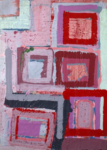Curator: So, here we have an untitled painting by Tiberiy Szilvashi, made using acrylic paint and matter-painting techniques, belonging to the abstract expressionist movement. What strikes you first? Editor: The sheer vibrancy, I think. It's like an explosion of primary colors restrained just enough to keep it from becoming chaotic. Red definitely dominates – almost aggressively so – but the blues and the softer pinks offer some relief. I’m also really drawn to the texture. Curator: Absolutely. Szilvashi’s matter-painting approach lends a real physicality. This almost crude handling of the medium—a deliberate move away from smooth, academic surfaces—is quite characteristic of abstract expressionism’s desire to represent the raw and immediate. Editor: Right, it feels…visceral. Looking at it makes me want to smear paint around. There’s an untamed energy, a boldness, but underneath, I also see a vulnerability in the layering, in those thin drips running down the left side. It’s not just bravado, it's a feeling. Curator: Precisely, expressionism in a nutshell! And we need to consider the social and cultural backdrop. After the horrors of the mid-20th century, there was this palpable urge to throw off the shackles of convention and give voice to inner turmoil through pure abstraction. Editor: So this isn't about landscapes or portraits, but about internal landscapes instead. Makes sense. I can almost feel that unrest and rebellion simmering beneath the surface here. Curator: The ‘Untitled’ title pushes this further, freeing it from direct associations, placing emphasis solely on emotional response. It’s a universal language of color and texture rather than a specific narrative. Editor: And isn't that what art is about, really? Speaking to those wordless parts of ourselves. I love how something so outwardly brash can feel so intensely personal. Curator: It truly embodies the power of art to transcend its materials and touch something deeper within us, resonating across cultures and time. Editor: I completely agree, the tension between control and spontaneity is mesmerizing. This artwork ignites the imagination, sparking contemplation about what it means to exist.