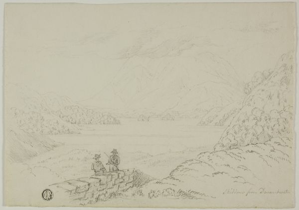Curator: Before us, we have Edward Lear's "Mountainous View from Antrodoco," a pencil drawing he rendered in 1845. What strikes you immediately? Editor: There’s a stillness here. The monochromatic palette, the delicate lines… it evokes a quiet solitude, almost a melancholy. Curator: Indeed. Lear often sought such scenes, didn’t he? Places where nature felt untouched, offering a sort of sublime escape. In the 19th century, this search was so closely associated with the burgeoning concept of nationhood as figures such as Lear depicted idealized views to shape an idea of what nations look like and stand for. Editor: And it seems to have resonated widely. The mountains, almost stoic in their presence, appear as silent witnesses. I wonder about Lear's emotional state during this period; the scene reads like a projection of internal quietude onto a landscape. Is there any cultural memory associated with this location? Curator: Antrodoco was a strategically important town in the Papal States. Lear would have felt deeply connected to it during a particularly contentious time for the Italian peninsula. Think about this area as both a source of material inspiration and an almost stage setting where he could engage with social upheavals from what seemed a removed position. Editor: Right. I see the emotional appeal combined with a canny commentary, however subtle. Notice the careful shading on the peaks, contrasting with the almost rushed strokes delineating the foreground—suggesting an ambivalence, maybe. It would make sense that he wanted to record every feature that appeared remarkable while also considering what aspects must take center stage for his public. Curator: Absolutely. I wonder if that duality also informs the broader appeal. Its almost photographic accuracy draws the eye. It's simultaneously a document of a real place and a powerful piece of Romanticism in its depiction of that sublime, almost spiritual encounter with the natural world. Editor: Yes, both document and invitation. An invitation, perhaps, to find our own quietude within these monumental forms. Thanks to this interplay between observation and the psychological realm of associations, I feel encouraged to delve a little bit deeper into the relationship between external location and personal condition. Curator: Me too. Lear gives us both place and possibility.