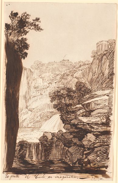 Editor: We're looking at "Near Glaris [Glarus], Switzerland," a landscape created by Francis Towne in 1781, using ink. It’s stark, almost severe, with the sharp lines defining the mountains. What can you tell us about it? Curator: It's important to remember that landscape wasn’t always just about pretty scenery. In Towne’s time, Romanticism grappled with ideas of the sublime, with the ways landscapes reflected power, spirituality, and human insignificance against the vastness of nature. I wonder how ideas of nationhood are playing a role here in a picture of the Swiss countryside? Editor: Nationhood? Curator: Well, landscape often becomes shorthand for a nation's identity. Think about whose stories get told through the depiction of these "empty" landscapes? Who had access, who was excluded? And how did representations like this, consciously or not, help to define early ideas of Switzerland, or "Swissness?" What might that idealized image conceal? Editor: So it’s not just about the mountains themselves, but what they represent at that moment in history. Did Towne have a political agenda? Curator: Perhaps not overtly. But artists are never truly neutral. Towne's choice to depict this particular scene, using this very controlled, almost graphic style, is itself a statement. Notice how the use of line creates a sense of both control and drama. Does that control reflect something about the relationship between people and the environment at the time? Editor: I hadn't thought of it that way. I was just looking at the beautiful scenery, but now I see it differently. Thank you for providing more food for thought. Curator: My pleasure. Remember, art doesn't exist in a vacuum. Thinking critically about these layers adds a richer dimension to how we perceive and interact with it.