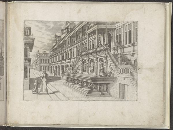 Editor: Here we have Israel Silvestre's "View of the Garden Terrace of the Villa d'Este at Tivoli," created around 1643-1644, using pen, ink, pencil, and watercolor. There’s something so precise yet ethereal about the way he captured this garden. I’m curious, how do you interpret this work, especially considering its historical context? Curator: It’s a fascinating snapshot of power and control over nature, isn't it? The Villa d'Este was commissioned by a Cardinal, a high-ranking member of the Catholic Church, at a time when the Church wielded immense social and political power. What do you notice about the relationship between the architecture and the natural elements in the drawing? Editor: Well, the architecture is very rigid and structured, whereas the garden, while clearly designed, appears more organic and free-flowing, but in a specific way, maybe like a "carefully un-cared for" situation. Curator: Exactly. It reflects a hierarchical view of the world, doesn't it? Nature is being molded and shaped to reflect human ideals and to display status and privilege. These gardens were exclusive spaces, enjoyed primarily by the elite, embodying a visual language of exclusion. Does understanding this context shift your initial feelings about the work? Editor: It does. Knowing that it represents this kind of societal control, makes me see it beyond just a beautiful scene. It raises questions about access and the stories that aren’t being told. It makes you wonder whose labor was exploited to build the very steps featured in this sketch. Curator: Precisely. It urges us to interrogate not only the beauty but also the power dynamics embedded within seemingly idyllic scenes. Editor: It really encourages a deeper reading of the work and its cultural implications. Curator: Absolutely. That's the power of contextualizing art within broader narratives.