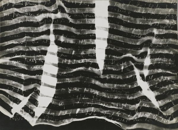 Editor: This is Ian McKeever’s "Print I - Version VIII" from the Tate collection. It's a striking black and white print. I'm really drawn to the texture - it feels very raw and immediate. What do you see in this piece? Curator: I see an exploration of the printing process itself. Look at the grid-like structure; it suggests a deliberate construction and deconstruction of the image. Consider the labor involved in creating such a textured surface. Is it challenging traditional printmaking's supposed slickness? Editor: So you're saying the roughness is intentional, a statement about the work itself? Curator: Exactly. It makes you question the value we place on polished versus raw materials. What does the contrast between the grid and the organic shape on the side evoke for you? Editor: It's like the grid is trying to contain something that resists being contained. Thanks, that really changes how I see the artist's intentions here. Curator: Precisely. By focusing on the material qualities, we can move beyond representation and consider the act of creation.