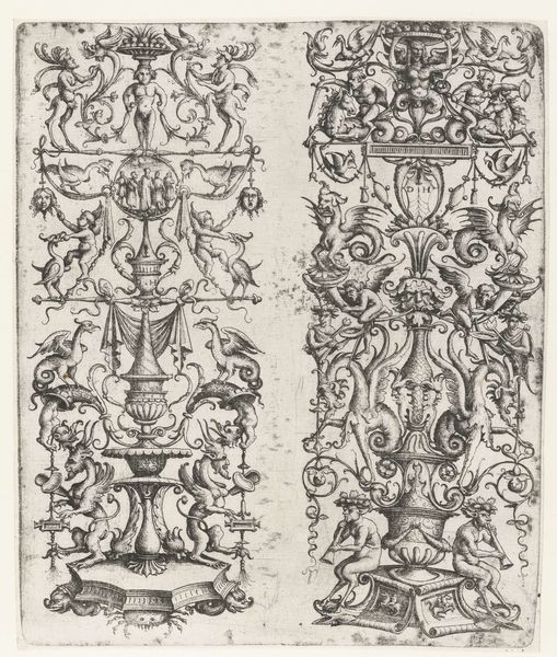 This etching, titled "Onderdelen van koets" and made by an anonymous artist, offers a glimpse into the decorative elements of a carriage. Likely created in the Netherlands, the print showcases detailed ornamentation with classical motifs. The design suggests a culture deeply invested in displays of wealth and status. Carriages in the Netherlands were not merely modes of transportation; they were potent symbols of social standing. The presence of classical figures, cherubs, and intricate scrollwork indicates a desire to associate with the grandeur of past empires, reinforcing the owner's perceived importance. Such prints functioned as pattern books, circulating among artisans and patrons. They played a crucial role in disseminating aesthetic ideas, shaping the visual landscape of Dutch society. To fully appreciate this image, one must delve into period account books, guild records, and design manuals. By studying these sources, we can better understand the social forces that shaped artistic production and the public role of art in the Netherlands.