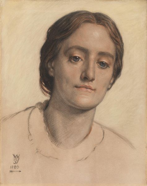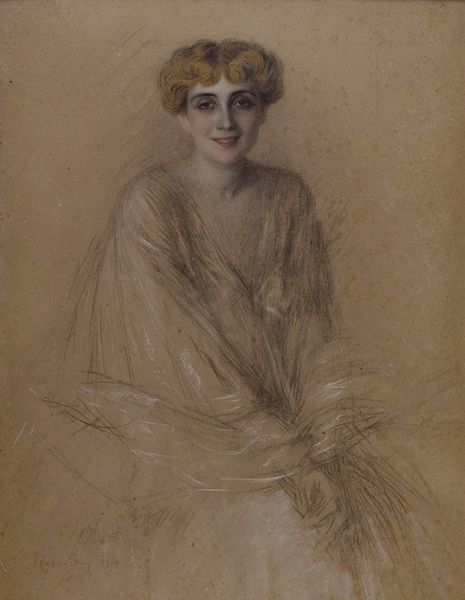 Curator: This is William Valentine Schevill’s *Portrait of a Woman*, currently held at the Harvard Art Museums. I find its soft hues quite captivating. Editor: Indeed, there's a certain melancholy to the tonal range. The pastel medium lends itself to a wistful depiction. Curator: Agreed. Schevill’s subtle use of light and shadow sculpts the figure, yet the overall composition feels deliberately unfixed, almost dreamlike. What might this suggest about early 20th-century portraiture conventions? Editor: Perhaps a move towards a more interior, psychological portrayal. Public portraiture was shifting from commemoration of status to a reflection of inner life. Curator: Precisely, and that contextual shift informs how we decode the artist's handling of line and form. The open blouse almost hints at sensuality. Editor: A poignant reminder of shifting societal roles and expectations surrounding women at that time. I find the subject's expression rather striking in contrast. Curator: Yes, the nuances of her gaze provide a focal point. A convergence of technique and social commentary. Editor: A fascinating interplay between aesthetic form and its socio-historical resonance.