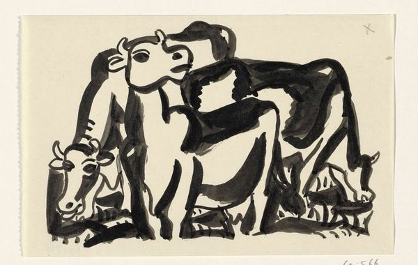 Roy Lichtenstein made this study for a cow triptych on paper, using a graphic style of drawing and bold colors, maybe as a kind of comic book riff on a farm scene. The bright yellow field and blue sky feel flat, almost like stage sets. The cow itself is outlined with a clean, dark line, and filled with diagonal stripes giving it volume. What strikes me is how Lichtenstein simplifies everything, reducing the cow to these basic shapes and lines. It’s kind of funny actually, this idea of taking something so natural and turning it into something so Pop. Look at the shadow under the cow, it’s so simple, just a dark shape that gives the whole image a sense of depth, but it’s also totally artificial. It makes me think of the way Warhol took everyday objects and made them iconic. I guess Lichtenstein is doing the same here, turning a regular cow into a symbol. It's an ongoing conversation, each artist building on what came before.