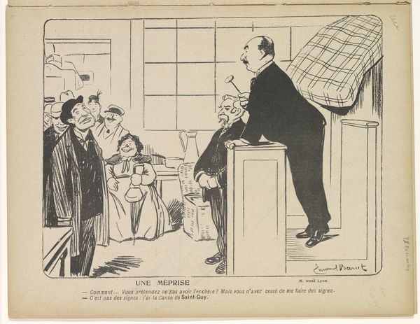 This satirical print, created by Johan Michaël Schmidt Crans in 1863, presents a sharp commentary on education in the Netherlands. Dominating the foreground are two imposing figures representing "Middelbaar Onderwijs" (secondary education) and "Uitgebreid Lageronderwijs" (extended primary education) respectively, symbols of academic and social hierarchy. These figures, particularly the one embodying "Uitgebreid Lageronderwijs" with his assertive posture, remind me of similar power dynamics depicted throughout history. Think of ancient Roman depictions of emperors, or even Renaissance portrayals of wealthy merchants—each using posture and accoutrements to project authority. Consider how such imagery evolves: the Roman emperor's laurel wreath transforms into the top hat of the 19th-century burgher, each symbol intended to instill a sense of awe and perhaps even fear. This continuous reshaping of symbols reflects our collective, subconscious need to negotiate power structures. The tension between the figures in this print evokes a timeless struggle between tradition and progress, resonating with the anxieties of a society on the brink of transformation.