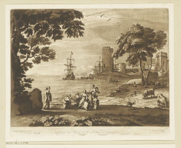 Richard Earlom's "Landscape with Lake and Men Building Ships" evokes a timeless scene of human industry set against nature. The axe, prominently wielded by a figure in the foreground, immediately grabs our attention. The image of an axe resonates deeply within our collective memory; a symbol of power and creation, but also destruction, echoing through the myths of Hephaestus and the forests of ancient lore. We see its reflection in rustic emblems and the heraldry of nations, reminding us of humanity's struggle to shape its environment. The psychological implications of the axe are profound. It represents the will to transform, to master the material world, yet it also carries a shadow of aggression and the potential for irreversible change. As we contemplate this image, let us reflect on the ever-evolving dance between human ambition and the natural world, a cycle perpetually renewed throughout history.