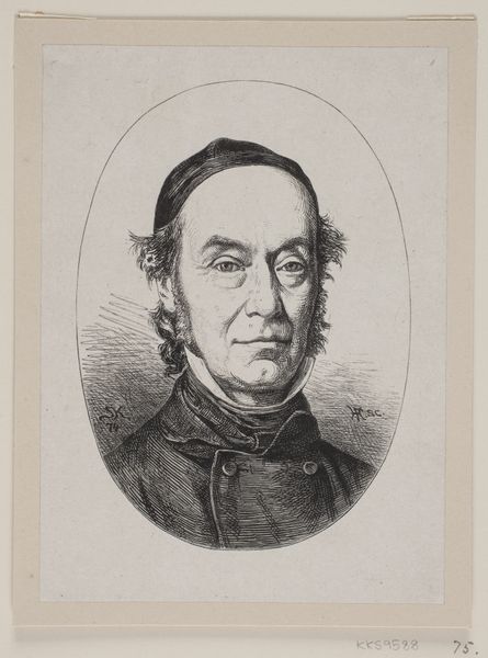 Curator: This is an interesting piece. What captures your attention about this print? Editor: The rosy cheeks against that sea-green backdrop! He seems like he’s seen a storm or two. The artist clearly had a sense of humor about those sideburns. A true sea dog! Curator: This portrait of E. Frangeul comes from an 1887 lithograph series, titled "Sea Captains." It was commissioned by W. Duke, Sons & Co. as promotional material for their 'Honest Long Cut' tobacco. Its current home is here at the Metropolitan Museum of Art. The composition places Frangeul against the Transatlantic Company flag. Editor: Interesting. I assumed he’d just stepped off his ship. I like the visual storytelling here—it isn’t just about selling tobacco; it evokes this whole romantic image of the open seas. It looks more complex, though, for just a bit of commercial ephemera. There's a real attention to detail in those lines. Curator: Notice the interplay of primary colors. The red of the emblem provides a focal point, cleverly echoed in Frangeul's face and the textual elements at the base. There's a striking flatness of the print medium countered by delicate shading and the rendering of textures. It’s not merely representational but operates with a level of formal consideration. Editor: So it’s playing both games—a direct advert and art too. Did this ‘Sea Captain’ brand make a splash? Does it symbolize America trying to define its culture, to have its own seafaring heroes separate from the old world? Curator: Contextually, these were produced during a period of intense competition in the tobacco industry, where advertising cards were extremely popular. Semiotically, we can examine the image as a signifier—the captain as an emblem of reliability and the allure of transatlantic travel, carefully constructed by the Duke company. Editor: And all that for a bit of tobacco! It speaks to the powerful image making, of connecting an ordinary thing, smoking, to grand ambition. Makes you think differently about every pack you pass. A fascinating peek into another time. Curator: Precisely. Analyzing it has refined my understanding, too. Thank you!