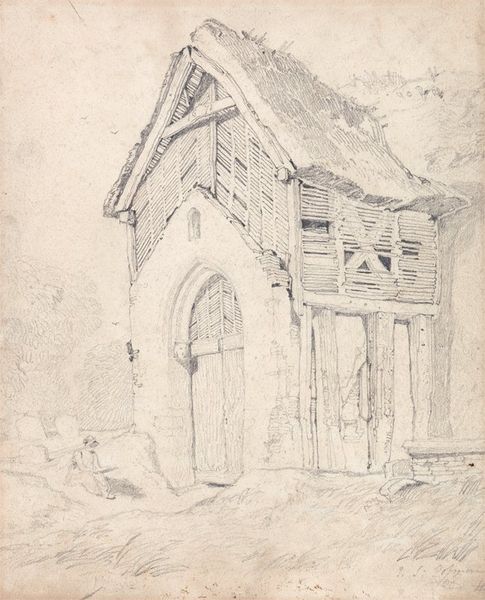 John Sell Cotman made this drawing of "Yarmouth, the North-west Tower" using graphite. At first glance, the pale tones and delicate lines give the scene a hushed, almost dreamlike quality. The tower looms, yet it is softened by the sketch-like details. The structure of the tower is defined by an intricate network of lines, which articulate its cylindrical shape. The artist's meticulous attention to the tower's architecture is juxtaposed with looser, sketchier lines of the surrounding buildings. The lines build layers of visual information. The composition strikes a balance between detail and suggestion, encouraging the viewer to engage in acts of looking and thinking. The architectural structure is contrasted by the informal sketch of figures. The artist uses visual signs of linear perspective to create a spatial depth and to engage the viewer in the act of deciphering the relationship between form and meaning. The sketch is a testament to the enduring power of simple lines to evoke both a specific sense of place, and a broader meditation on history, architecture, and human presence.