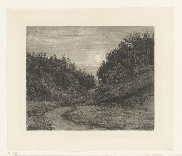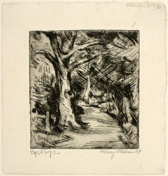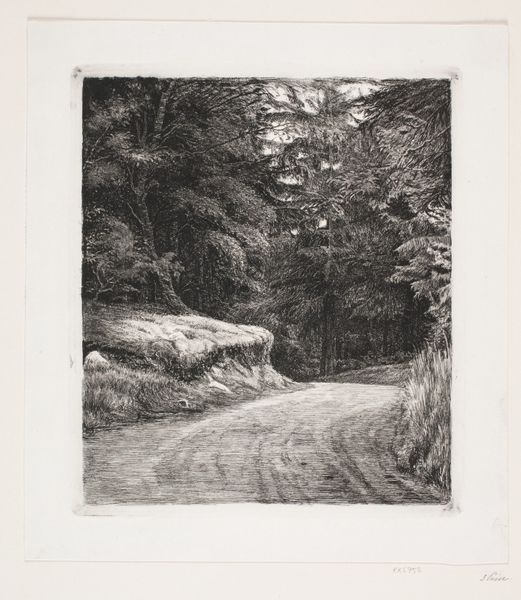 Carl Bloch made this print of a forest road using etching, a process with a fascinating history. Etching involves covering a metal plate with a waxy, acid-resistant ground. The artist then scratches an image into this ground, exposing the metal. When the plate is submerged in acid, the exposed lines are eaten away, creating grooves. Ink is applied to these grooves, the surface wiped clean, and the image transferred to paper under high pressure in a printing press. The result is a delicate dance between control and chance. The artist’s hand guides the needle, but the acid introduces an element of unpredictability, giving the lines a characteristic bitten quality. We see this clearly in the fine network of lines that make up the trees, the road, and the play of light and shadow. The social significance here is twofold. First, the printmaking process allowed for wider distribution of images, democratizing art. Second, the image itself, a humble forest road, speaks to a growing appreciation for the natural world, reflecting broader cultural shifts in 19th-century Denmark. By attending to these materials, making, and context, we can come to a fuller appreciation of this image.