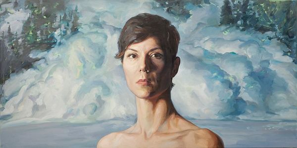 Curator: I'm drawn to the artist Melissa Hefferlin's "Portrait of Victoria Kalaichi." The soft light and muted colors create a calm, almost melancholic mood, wouldn't you agree? Editor: It’s certainly evocative, yes. Notice the formal device of the canvas on the right displaying the portrait that Victoria seems to be working on; it sets up an interesting dynamic—portraiture and the artist. It adds depth through this embedded mise-en-abyme. Curator: Indeed. Considering Hefferlin's practice, it's compelling to view this portrait through the lens of contemporary discussions on the role of women in the arts, as both subject and creator. How often are women painted by male artists and rendered passive or idealized? Here, Victoria is an active artist, holding her brush, her gaze thoughtful. Editor: And she seems aware of us watching her! Let's also note how the oil paint’s materiality, worked into a very controlled range of tones, becomes its own representational language. The structure, even in the backgrounded teapots and the vase of flowers, shows such deliberate construction. Curator: I find the inclusion of what seems like a samovar and other metal teaware intriguing. Are they a hint towards her identity or cultural heritage? Editor: Well, cultural readings are vital; let’s recall how, since the Renaissance, certain objects have symbolized wealth and status. While not always explicit, art often reflects social class and gender roles through visual signifiers. Consider how similar compositions through history are tied to patriarchy. Here, it looks… softer, more muted. The traditional gaze is somehow questioned, don't you think? Curator: It certainly complicates it! Perhaps a challenge to that historic hierarchy? I appreciate that complexity here, avoiding a simple dichotomy. Editor: I agree entirely. Through its visual construction and engagement with tradition, it invites continuous inquiry into who is creating and the role social constructs play. It asks us to contemplate our interpretations and acknowledge those systems of meaning. Curator: Ultimately, a reminder that the power of a portrait lies not just in the representation of the sitter, but also in its power to speak to us about the context and the act of its creation. Editor: Indeed. Its aesthetic strategies provoke these types of discourses! A subtle, and yet compelling work.