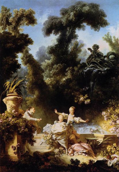 Jean-Honoré Fragonard painted "The Confession of Love" in oil on canvas. The composition is dominated by a vibrant, verdant scene where nature itself seems to participate in the intimate exchange between the figures. The lush foliage and soft, diffused light evoke a sense of idyllic romance. Fragonard masterfully uses asymmetry to destabilize traditional notions of balance. The statue on the right, a classical symbol, is juxtaposed with the organic forms of the surrounding nature, creating a tension between the eternal and the ephemeral. Note how the brushstrokes are loose, almost gestural, which reflects the Rococo interest in movement and emotion. The work destabilizes the established norms through its playful and dynamic treatment of love and nature. In essence, the formal elements of "The Confession of Love" offer more than just aesthetic pleasure. The painting prompts us to question fixed meanings and to embrace the fluid and contingent nature of experience itself.