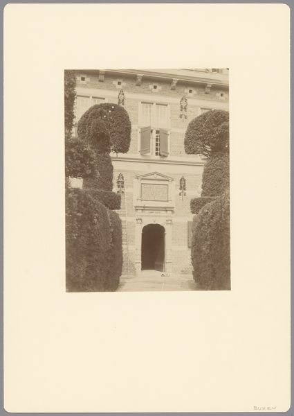 This photograph captures the entrance of the orphanage in Kampen, revealing a façade adorned with symbols of civic responsibility and communal identity. Above the arched doorway, you'll notice two figures flanking a coat of arms. These figures are a clear reference to the governors who were charged with the wellbeing of the institution. Consider this grouping in light of similar motifs found across Europe, where figures of authority are often depicted guarding or supporting shields or emblems. We may trace its origins back to ancient Roman depictions of emperors flanked by their consuls or generals. The coat of arms signifies the collective identity and values of the orphanage. Such symbols were not merely decorative; they served as a potent reminder of the social contract between the institution and the community it served. Over time, such emblems have appeared in various forms, adapting to reflect evolving social structures. These motifs speak to our collective memory and a subconscious desire for stability and communal connection. These symbols have resurfaced and evolved, constantly renegotiating their meaning within different historical contexts.