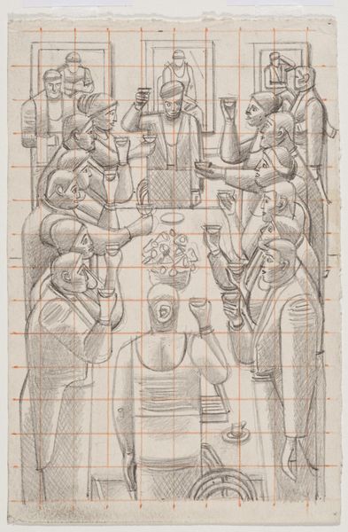 Editor: Here we have an untitled ink drawing by Zdzislaw Beksinski. It depicts a crowd of figures with grotesque, mask-like faces surrounding a figure who seems both powerful and vulnerable. The mood feels oppressive and nightmarish. What are your thoughts? Curator: This piece resonates deeply within socio-political contexts related to control, conformity, and the masked identities that society forces upon us. Notice the seeming power dynamic and consider the way that individuals are positioned within groups. Can you unpack how these symbolic structures operate, both historically and in the present? Editor: I see the figure at the front almost like a leader, but also bound, trapped. Are they leading the crowd, or a victim of it? Curator: That’s an incisive reading. Beksinski lived through totalitarianism in Poland. Perhaps this “leader” reflects the paradoxes of power – the way those in control are also controlled by the very systems they uphold. Think about the psychology of the crowd: anonymity can strip away individual accountability, allowing suppressed desires and anxieties to surface. What social critiques do you think the artist conveys through these grotesque visages? Editor: So the drawing critiques oppressive social systems and the loss of individuality. The grotesque might represent how society can deform us? Curator: Precisely. Beksinski masterfully uses visual language to confront us with uncomfortable truths. And note, he did not title it, so interpretation and cultural and social commentary are left to the beholder. Consider how such commentary invites critical conversations about gender, race, or class structures within our own communities. How might it inspire activism? Editor: That's a very powerful way to consider the work and its possible effect, thanks for sharing that! Curator: And thank you, it's so important to constantly re-evaluate artwork and cultural symbols with fresh, informed perspectives.