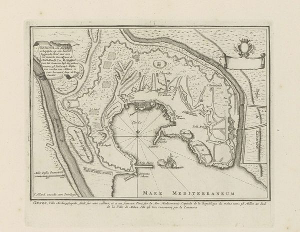 Curator: Here we have an anonymous engraving from around 1702–1703, titled "Plattegrond van Stevensweert." It's currently held in the Rijksmuseum. Editor: It strikes me immediately with its geometrical exactness. A carefully rendered representation—crisp lines, formal order… quite a technical drawing, wouldn’t you say? Curator: Indeed. Consider the historical context: Stevensweert was strategically important, shifting between Spanish and Dutch control. This detailed map served a clear purpose, providing valuable data for military planning, land management, and asserting dominion. Editor: Semiotically, look at how space is constructed. The strong lines define boundaries and fortifications. The visual language prioritizes structure, delineating power and control through form. Curator: Right, and look at the tools required for its creation—the engraving techniques, the skilled labor of the craftsman turning geopolitical strategy into a consumable and reproducible image. Consider how the very act of mapping and disseminating this image further solidified Dutch identity. Editor: Beyond its functional utility, though, doesn't it have a certain aesthetic appeal? The balance of open space and detailed rendering, the precision in line work... all these contribute to a refined viewing experience. Curator: But we can't ignore that these appealing elements belie the grim realities. This piece illustrates land constantly besieged. Who labored on the defenses of this landscape? How many local farmers were dispossessed because their fields were needed for strategic advantage? Editor: An interesting viewpoint...but it's impossible not to be captured by the pure composition. I hadn't thought about this print needing such context until you offered your points. Curator: Exactly. What appears as elegant draftsmanship served more complicated intentions and material outcomes for all. Editor: It's clear that an in-depth examination of form truly has the potential to also inform the way we view our reality. Curator: Likewise, understanding material implications alongside the elegant visuals will never cease to fascinate me.