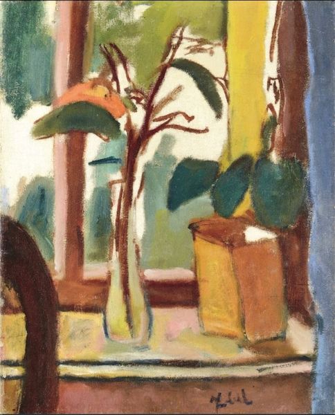 Curator: This watercolor by Charles Demuth, "Study for Poster Portrait: Marsden Hartley," painted in 1924, offers such an intimate glimpse into artistic circles of the time. The soft washes of color and almost casual linework give it an unfinished, preparatory feel. Editor: I’m really struck by the juxtaposition of the vibrant flower against the muted winter landscape outside the window. What do you see in this piece? Curator: I see Demuth positioning Hartley, not just as a fellow artist, but embedding his identity within broader themes of nature and interiority. The flower, bursting with life, contained within the domestic space, speaks to the tensions between public persona and private self that many queer artists of this era navigated. Editor: So, the window becomes a frame within a frame, emphasizing that boundary? Curator: Precisely. The "snow winter" visible outside, juxtaposed with the vibrant bloom, perhaps hints at Hartley's own internal landscape - a vibrant spirit weathering societal chill. And consider the fragmented words, the textual elements floating around the composition. What do those suggest to you? Editor: They almost feel like… clues? Hints of Hartley's character? Maybe Demuth is showing the different facets of his friend. Curator: Absolutely! And by including those textual fragments, Demuth disrupts a singular reading, inviting us to piece together Hartley's portrait ourselves. This act of visual annotation suggests that identity is not fixed, but a layered construction of perception, environment, and perhaps even societal expectations. It definitely moves past a formal portrait and really delves into cultural identity. Editor: It's fascinating how much this small watercolor reveals about the complex relationship between these artists and their world. I hadn't considered how much social commentary could be packed into what seems like a simple still life. Curator: Exactly! Art often serves as a potent lens through which to examine our histories, our identities, and our relationships to one another. It urges us to think critically.