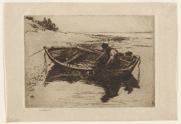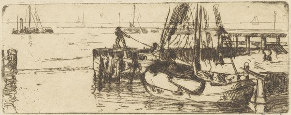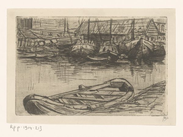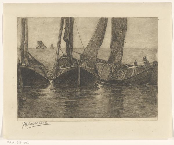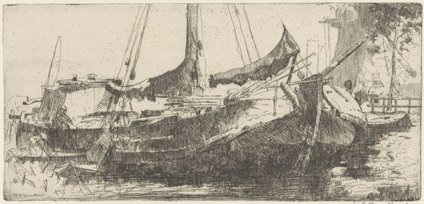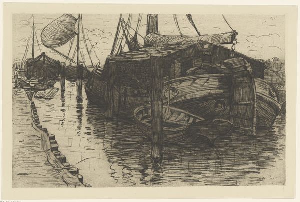 This etching, ‘Ships in a Canal’, was made by the Dutch artist Floris Verster, though the date is unknown. The scene is rendered in dark tones, evoking a somber, almost melancholic atmosphere. Verster was working at a time when the Netherlands was experiencing rapid industrialization and urbanization. Artists questioned how to represent the changing social landscape. The choice of a canal scene, with its suggestion of trade and transport, might be seen as a comment on the increasing commercialization of Dutch society. Also, the ships themselves, depicted in a state of relative inactivity, may hint at the decline of traditional industries in the face of modernization. The Rijksmuseum itself, as a national institution, played a role in shaping artistic tastes and promoting certain narratives about Dutch identity. To understand this work fully, we might delve into the archives of Dutch art institutions and historical societies to uncover the social and economic context in which Verster was working. Through such research, we gain a deeper understanding of the complex relationship between art and society.