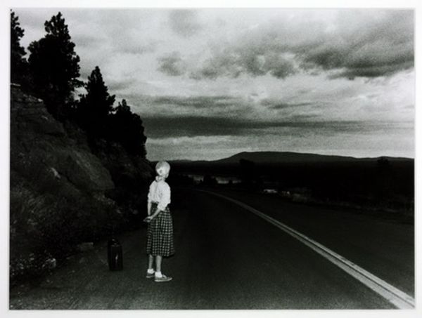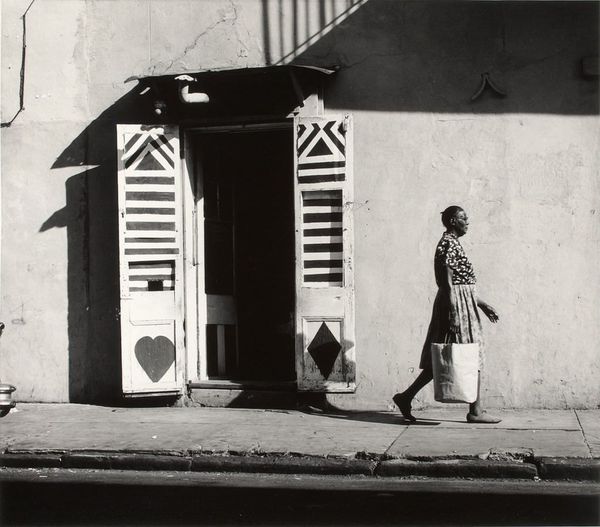 Dorothea Lange made this gelatin silver print, Brigham Young's granddaughter, St. George, Utah, sometime in the middle of the twentieth century. It's a study in contrasts, light and shadow, figure and ground. Lange creates a strong pull toward the horizon, and it’s almost like we’re being pulled into the future along with it. The texture of the road and the buildings give the image a great sense of depth and space. It's gritty, real, and very immediate. The strong shadow cast by the woman suggests she is rooted to the spot, but the composition as a whole speaks of temporality. Like Helen Levitt, Lange understood how to compose a photograph that spoke to a wider human drama. Both artists understood how to embrace ambiguity, and how photographs generate more questions than answers.