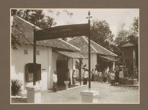 Editor: So, here we have a gelatin silver print from around 1925-1930, titled "Bewoners van de kampong bij suikerfabriek Meritjan te Kediri op Java," attributed to Isken. The scene feels like a candid glimpse into daily life, with a mix of structures and human figures. What grabs your attention when you look at it? Curator: Oh, the whisper of the everyday caught in a silver moment! It's not just what's there, but what's *implied*. That light, for instance – almost unbearably bright, bleaching out detail but somehow adding to the palpable sense of place. It reminds me of searing afternoons and the feeling of dust on your skin. Do you notice how the architecture seems both solid and impermanent? Editor: I do. There’s something serene but also kind of stark about those buildings. Why do you call it a 'silver moment'? Curator: Because it’s a photograph. The gelatin silver printing process… it's alchemic, you know? Light becomes image through this delicate dance of chemistry. But beyond that, "silver moment" captures its fleeting nature – a pause in time made tangible, hinting at countless other untold stories just beyond the frame. And consider its roots in Orientalism… the "gaze" itself. I wonder, who was Isken, really? Editor: That’s a really good point, the gaze… what was he trying to capture? Curator: Perhaps a sense of exotic authenticity? Or something more intimate? That’s the delicious tension in works like this. It asks more questions than it answers. What do you think those people were doing five minutes before the photo was taken? Editor: Probably just living, like the chickens scratching in the dirt! Thinking about it, that “silver moment” has opened my eyes to how much is *not* shown. Thanks! Curator: Precisely. The unseen. And that is where the real magic happens, don't you think? The photo isn't just what *is*, it's a springboard to what *could be*. Wonderful!