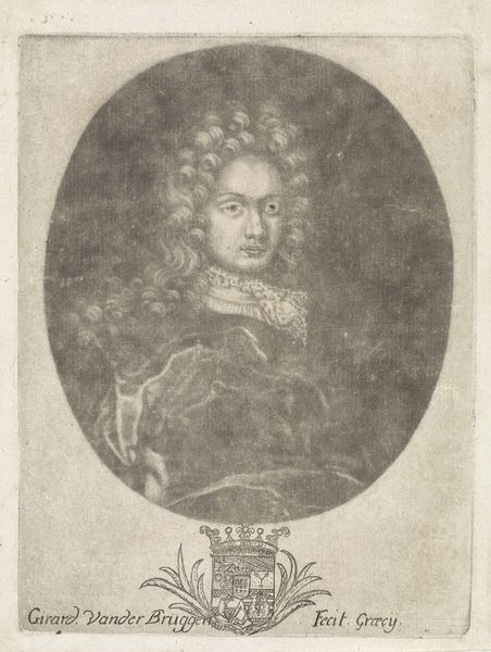 Editor: This is "Portret van de hofschilder Gottfried Keck" by Pieter Schenk, dating from 1670 to 1713. It's an engraving, so the details are quite crisp despite its age. What do you make of this piece? Curator: I'm immediately drawn to the engraving process itself. Consider the labor involved in creating those fine lines, the meticulous transfer of an image through purely manual skill. The resulting print, which itself facilitates distribution and potentially broadens artistic consumption... it democratizes the image in a way painting could not. Editor: That's a good point. I was thinking about how it looks – very typical of Baroque portraiture, right? The elaborate hair, the drape of the clothing… Curator: Exactly, but those sartorial elements speak volumes about the social context of the sitter and, more importantly, the *market* for these images. Gottfried Keck isn’t simply being represented; he’s being packaged and sold to a specific clientele who value this aesthetic. Who purchased these engravings and why? It opens an interesting dialogue around taste, class and the burgeoning art market. Editor: So you’re less interested in the artistic intent, and more about who consumed it? Curator: It's not that I discount intention, but I view it within a larger system. Think of the paper, ink, and tools involved. Each component is produced through a specific chain of labor, contributing to the material reality of the artwork. Even the Baroque aesthetic is a material product – an aesthetic "commodity", if you will – shaped by economics and social values. Editor: That definitely gives me a new appreciation for the work. I never thought about it as being like, a commodity. Curator: Precisely! Hopefully it expands our understanding of art beyond a rarefied object, and towards considering the material forces at play in its production and reception.