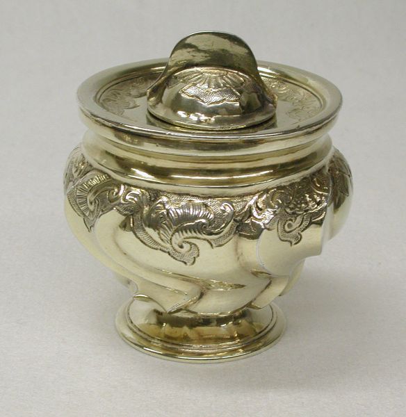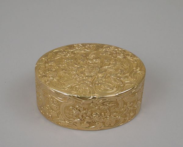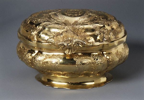 Curator: Well, isn't this little gem exquisite? It’s a silver "Toilet box," and this particular one was crafted between 1738 and 1750 by Johann Conrad Lotter. Imagine the secrets it once held! Editor: It does have a certain allure. At first glance, it feels so contained and luxurious. It practically screams, "Privilege!"—but what was its purpose exactly? Why the elaborate presentation? Curator: A “toilet box," despite the name, wasn't about plumbing! It was part of a nécessaire, a set of dressing table items. Think cosmetics, perfumes, maybe even a rogue's secret stash of love letters. The point was elegance and display. Imagine this sparkling in candlelight...utter decadence! Editor: Decadence indeed. In that period, elaborate rituals of grooming and display were deeply tied to social status and power. And while these rituals may seem frivolous to us now, they played a crucial role in shaping gender norms and social hierarchies of the time. Silver, a symbol of wealth and refinement, elevated the user of such item into the high elite of its day. Curator: Exactly! And just look at the detail. The chased floral designs, the curvaceous shape. It’s quintessential Rococo. Imagine Lotter hunched over his workbench, meticulously adding those flourishes… Editor: Right, that "frivolous" Rococo style was itself a visual expression of power and extravagance during a period defined by stark social inequality and impending revolution. Who gets to create and consume beauty – and at whose expense? Curator: Good point, it invites one to consider art's place in societal systems, a perspective to ponder in the context of this beautifully sculpted piece. For all of its historical ties, however, there's still something timeless about this level of artistry, right? It just draws you in. Editor: Absolutely. Recognizing the layers within, both artistic and cultural, lets us appreciate it from a wider and more enriched viewpoint, while questioning its position within society. Curator: I leave feeling equally reflective on artistry, beauty, and place, a trifecta for us to further contemplate. Editor: Indeed, an exercise to bring the past, and the artifacts thereof, to light.