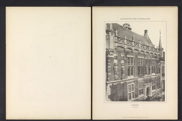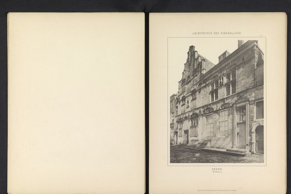 Editor: This albumen print, "Gezicht op de gevel van een woonhuis in Enkhuizen," which translates to "View of the facade of a house in Enkhuizen," dates back to before 1894. It is currently housed in the Rijksmuseum. What strikes me most is the very ordinariness of the scene, a few figures standing near a plain brick building. How should we interpret this slice of life? Curator: The "ordinariness," as you call it, is exactly what makes this image so powerful. In its historical context, the rise of photography coincided with increasing civic pride and documentation efforts. The image might have served a socio-political function to legitimize or project this northern Dutch town as safe and orderly. Editor: A sort of... municipal advertisement? Curator: Precisely! Or part of an archive that celebrated Dutch architectural heritage, to be admired nationally and abroad. Notice the people in the photograph—how they are presented, how they stand in front of what seems to be their house? Editor: Yes, it feels performative. Do you think they knew they were participating in the construction of a national image? Curator: Perhaps not consciously, but certainly, photography, even in what appears to be a straightforward depiction of architecture, is always embedded in layers of cultural meaning. How it circulates, who sees it, who commissions it -- all of that impacts its meaning. Editor: That shifts my thinking entirely. What I saw as a simple street scene is actually a carefully constructed image, contributing to a larger narrative of national identity and progress. It speaks volumes about the social role of photography and even about architecture. Curator: Indeed. This image, beyond its aesthetic appeal, opens up fascinating questions about the interplay between art, politics, and the public sphere. Editor: I'll never look at old photographs the same way.