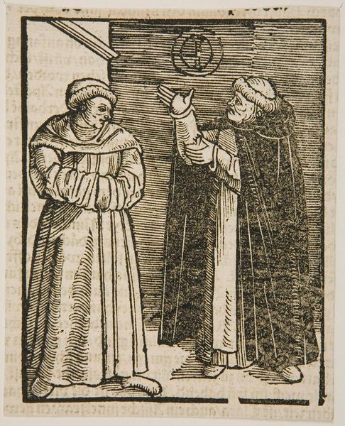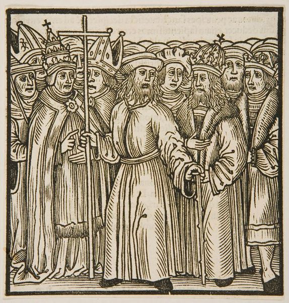 Editor: This is Illustration XIV by an anonymous artist, held at the Harvard Art Museums. It’s a striking image, this woodcut, because you can really see the marks of the tool that created it. What's your take on this piece? Curator: The linear quality suggests the labor involved in its creation. We can look at the materiality of the woodblock itself, how it facilitated the mass production of images, and consider its place in the economy of visual culture at the time. How does the act of replication change the message? Editor: That’s a great point. I hadn’t considered the impact of the printing process itself. Curator: Exactly. Think about who would have had access to this print, and how that shapes our understanding of its purpose. It’s about the people and the process as much as the image itself.