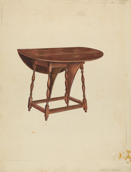 Edna C. Rex made this drawing of a desk, and what grabs me is the way the brown washes are laid down with such precision. You can almost feel the grain of the wood, can’t you? The artist renders the desk with such care. Look at the way the light catches the edges, giving it a kind of glow. It's like Rex isn't just drawing a desk; she's capturing a moment, a feeling. The color isn't just brown; it's a warm, inviting hue that pulls you in. Notice the way she’s carefully rendered the hardware in the upper section, it’s delightful. It reminds me of some of the design drawings by Josef Albers when he was at the Bauhaus. Both artists have this way of making functional objects into things of beauty. And like Albers, Rex invites us to see the world with fresh eyes, finding beauty in the everyday.
