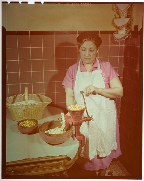 Editor: This is an untitled photograph by Jack Gould, depicting a chef's hands skinning frogs' legs. The close-up view is fascinating, but honestly, a little unsettling. What do you see in this piece? Curator: The process is the point. Look at the labor involved, the raw materiality. The chef's uniform, the table setting – they're all part of a larger system of food production and consumption. How does this image challenge traditional boundaries between high art and… well, dinner? Editor: So it's less about the frog itself and more about the act of preparing it? I hadn't considered that. Thanks! Curator: Exactly! The material reality is the message.