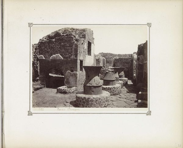 This photograph of a house with oven and mills in Pompeii was created by Giacomo Brogi at an unknown date. Brogi lived in a time when photography was being used to document and, in a way, possess images of distant lands and ancient sites. Consider the layers of history that this image holds: Pompeii, a city frozen in time by the eruption of Mount Vesuvius, and then rediscovered, excavated, and documented in the 19th century. Brogi, through his lens, becomes a part of this historical narrative. The photograph invites us to think about labor and daily life. Ovens and mills weren't just objects, they were central to the livelihoods of individuals. How did gender, class, and slavery shape who toiled in spaces such as this one? What were their stories? We should reflect on how even in ruins, the echoes of human existence resonate. The photograph is a reminder of the passage of time, and the stories embedded within the stones.