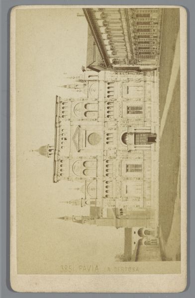 This sepia print captures the courtyard of the Doge’s Palace in Venice, presenting the Scala dei Giganti from a unique, oblique perspective. The composition is dominated by strong architectural lines and the interplay of light and shadow, evoking a sense of historical grandeur. The anonymous artist has meticulously rendered the intricate details of the palace's façade and the staircase, emphasizing the monumentality of the space. The photograph, through its monochrome palette and detailed depiction, seems to invite a deeper consideration of space, power, and representation. Here, perspective functions not merely as a tool for depicting reality, but as a means of constructing a symbolic order. The figures in the foreground provide a sense of scale, accentuating the overwhelming presence of the architecture. Notice how the lines of the building converge, drawing the viewer's eye towards the heart of Venetian power and suggesting that within this perfectly crafted space lies an intricate web of cultural and historical meanings. This artwork is a fascinating investigation into how architecture can shape our understanding of history, and how our understanding of the world is mediated through the artist's formal choices.