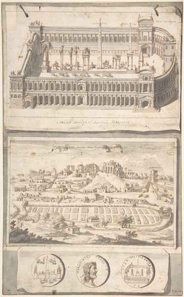 Jan Goeree created "A Reconstruction of the Thermae of Nero (above) and a View of the Ruins (below)" with pen and brown ink, and brush and gray wash. Goeree made this drawing during a period in Europe when there was a renewed interest in classical antiquity. The print reflects not only an architectural rendering but also a commentary on power, time, and legacy. The top half depicts a pristine, idealized reconstruction of Nero’s Baths. But below, we see the fragmented ruins, a stark reminder of the transience of human achievements. The contrast speaks volumes about the hubris of emperors and empires. Nero, in particular, was known for his extravagant building projects. The ruins suggest the ultimate futility of such displays. The aestheticization of ruins became a popular trope in art and literature, symbolizing the inevitable decay of even the most powerful civilizations. The drawing encourages us to reflect on how societies construct and remember their past, and how those constructions affect our present.