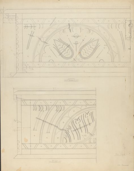 Curator: We’re standing in front of "Fantasieornamenten," or "Fantasy Ornaments," a drawing by Carel Adolph Lion Cachet, likely created sometime between 1874 and 1945. It's currently held at the Rijksmuseum. Editor: It looks like a page torn from a sketchbook, doesn’t it? There’s a lightness and a playfulness to these initial ideas that’s utterly charming. Like catching the artist mid-dream. Curator: Exactly. Cachet was deeply involved in the decorative arts movement, and this sketch really encapsulates that aesthetic. We see the hallmarks of Art Nouveau here: flowing lines, stylized forms, an emphasis on organic motifs. He taught decorative art and design. Editor: Those organic motifs… they’re fighting to escape geometry aren’t they? I keep seeing echoes of both blossoming and constraint in those lines. It feels like a controlled explosion. It reminds me of botanical studies merged with architectural planning, perhaps a bit awkwardly. Curator: Interesting point. The drawing does exist in this tension between precision and spontaneity. Cachet trained as an artist but he really gained recognition from decorative arts, particularly with interior design and textiles. The sketch embodies a certain search for the right combination of these elements. Editor: Thinking about how patterns become motifs in everyday objects – plates, curtains, even tattoos… It’s wild how a sketch like this could morph into something so commonplace, or maybe spectacular, gracing a building. The creative journey starts here. What objects were brought to life by it, I wonder? Curator: It's fascinating to consider the unrealized potential within such a seemingly simple drawing. As an exploration of how we create meaning through ornamentation, it resonates even today. Editor: Yes, even an idle doodle might become part of our environment. An idea which itself becomes something functional, worn, beloved. Curator: A powerful reminder of how public spaces and design carry the aesthetic of art. Thanks for sharing your insight. Editor: And thank you for the wonderful context! It's made me see it differently, and I am taking that home with me today.