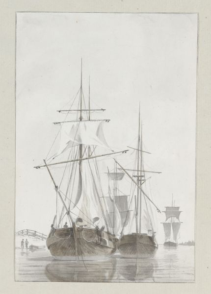 Editor: Here we have "Zeilschip," a pencil and paper drawing of a sailboat by Hendrik Abraham Klinkhamer, made sometime between 1820 and 1872. I find it very delicate, almost ephemeral. What strikes you about this work? Curator: I'm immediately drawn to the materiality of the work. Look at the specific grain of the paper; it informs how the pencil sits on the surface, creating subtle tonal variations. This choice wasn't arbitrary. Think about the paper mills of the time and how different grades of paper served different purposes – from sketching to finished presentation drawings. What kind of social strata do you imagine might commission such work? Editor: Well, based on the subject matter and delicate lines, I'd assume someone interested in maritime activities or maybe even the ship itself. So a merchant or ship owner? Curator: Precisely! Consider the economics of shipbuilding at the time. This drawing could have functioned as a proposal, a record, or even a form of symbolic capital, showcasing the commissioner’s investment in trade and naval power. The artist's labor becomes part of the narrative, mediating between commerce and representation. Notice the precise lines; they speak to a specific type of technical skill acquired through apprenticeship. Editor: That’s a fascinating point; I hadn’t considered the drawing as part of a larger economic system. So, by analyzing the materials and the labor involved, we gain insight into the socio-economic context of its creation? Curator: Exactly. This isn’t just a pretty picture of a boat. It's an artifact of its time, reflecting production processes, economic forces, and the role of the artist within that system. Editor: I see that now; looking closely, this drawing becomes more than just an image of a ship. Thanks, this really shifts my perspective! Curator: It's been enlightening for me too, reflecting on how materials connect art to a much broader material culture.