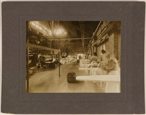 Editor: This 1907 photograph by Woodhead Studio, titled "Defectives, Epileptics," depicts the interior of a laundry at the Palmer State Hospital. It's stark. What does this image tell us about the lives of the patients? Curator: The photograph, with its clinical approach, reveals the institutional practices of the time, presenting the labor of those deemed "defective." Consider how the hospital setting, a microcosm of society, reflects broader social attitudes towards disability and labor. Editor: It's troubling how casually people were categorized. So, the act of photographing becomes part of the categorization? Curator: Precisely. Photography here isn’t just documentation, it's participating in the act of social control and reinforcing power structures. Think about who commissioned the photograph and its intended audience. What message were they trying to convey? Editor: That's a chilling thought, but it completely changes how I see the image. Thanks!