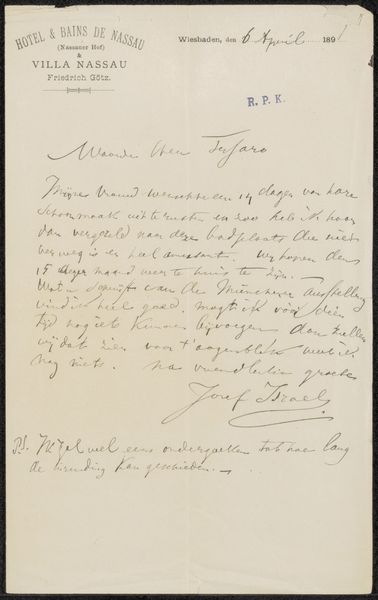 This is a letter written by Jozef Israëls, sometime in the late 19th or early 20th century. Addressed to Jeanne Henriette Hijmans, the letter gives us an intimate insight into the social circles of artists and their associates in the Netherlands. Israëls, a prominent figure in the Hague School, often depicted the lives of fishermen and rural laborers. But here we see a different side of his world, one of musicales in villas, and personal correspondence. What was the nature of the relationship between Israëls and Hijmans? Was she a patron, a fellow artist, or a friend? The letter mentions musical gatherings, hinting at the cultural activities and social networks that sustained artistic production. To understand this letter fully, one could delve into the archives of artists' correspondence, biographical details of the people involved, and studies of the cultural life of the Hague School. By exploring these sources, we can uncover the social fabric that supported and shaped the art of the time.
