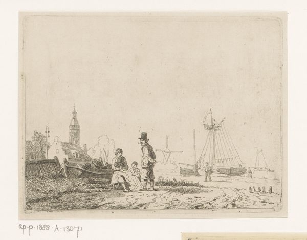 Leendert Brasser etched "Fishermen and Fishing Boats on the Beach at Scheveningen", giving us a glimpse into the life and labor of a Dutch fishing community. This etching transports us to the shore of Scheveningen, a village that existed in a precarious balance with the sea. It captures a moment in time, an atmosphere of everyday life, where fishing wasn't just a job, but a way of life, deeply interwoven with the community's identity. Note the figures, the rhythms of labor, where women and men, young and old, engage in this work. This wasn't just about catching fish; it was about survival, community, and the transmission of skills and knowledge across generations. Consider how the work shaped gender roles, as women cleaned the catch, and men sailed the boats. Brasser's etching offers us a window into the past, allowing us to reflect on the connections between labor, identity, and community, and to consider the complex ways in which people lived and worked in a world shaped by the sea.