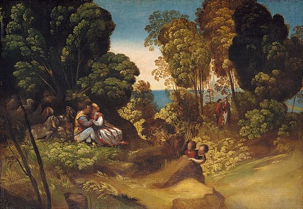 Joachim Patinir painted "The Rest of the Flight into Egypt" in oil on wood, a vista of vivid greens and blues punctuated by rocky crags. The eye is led through winding paths and distant towns, evoking a sense of journey. Patinir's composition is a structured landscape, not merely a backdrop. Mary and Jesus are nestled in the foreground, while the environment envelops them. Patinir destabilizes the traditional hierarchy. By giving prominence to nature, he elevates it to a co-protagonist in the sacred narrative. Linear perspective meets aerial perspective, creating depth, but also a sense of the world's vastness dwarfing the figures. Patinir's technique is meticulous and detailed, reflecting the broader artistic and philosophical concerns of his time, where the natural world was increasingly studied and appreciated in its own right. The landscape isn't just a scene, it's a reflection of a changing worldview. This shift towards landscape as a carrier of meaning continues to invite interpretation and reinterpretation, reminding us of the ongoing dialogue between art and its viewers.