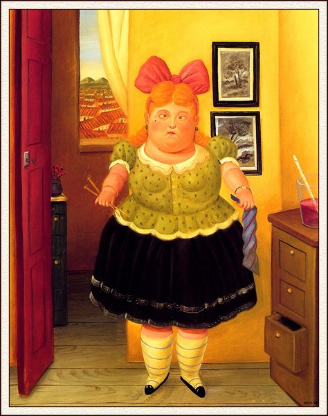 Fernando Botero’s painting, “The House of Amanda Ramirez”, offers a window into a scene rendered in oil paint on canvas, a traditional medium for fine art. Botero's work gains significance from its voluptuous figures, each one rendered with meticulous care. The oil paint is layered to create a sense of depth, lending the figures a sculptural quality. Consider the artist’s process: the build-up of pigment, the blending of tones, and the deliberate brushstrokes that define each curve and contour. It takes great labor and patience to achieve this look. Botero has long engaged with the distinction between so-called ‘high art’ and craft traditions, challenging conventional notions of beauty and form. His artistic choices prompt questions about beauty standards and social structures. His approach is deeply rooted in the history of painting, yet his subject matter is distinctly contemporary, reflecting on issues of human relationships, social class, and labor. Ultimately, understanding Botero’s materials and techniques is key to unlocking the full meaning of his work, bridging the gap between art and the broader cultural landscape.