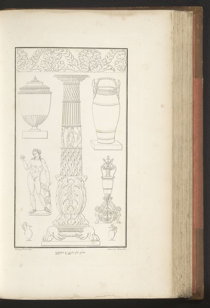 Charles Pierre Joseph Normand created "Diverse ornamenten," a drawing of various decorative objects. Living through the French Revolution and the Napoleonic era, Normand's life and work were steeped in the revolutionary fervor and the subsequent reshaping of European identity. Normand's drawing uses a neoclassical style, evoking a sense of order and reason, a direct response to the preceding Rococo period's frivolity and excess. The images present classical forms such as urns and helmets which were visual tools intended to recall the virtues of ancient societies. This aesthetic emerged during a time of immense social and political upheaval. Normand offers a glimpse into the visual language of power and identity. This art exists as a way to reflect on the narratives we construct around ourselves and the symbols we choose to represent our values. This collection of ornaments serves as a reminder that what we choose to display reflects who we aspire to be, both individually and as a society.