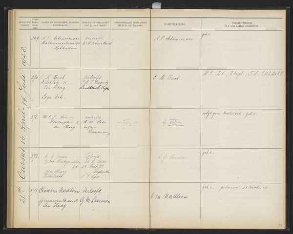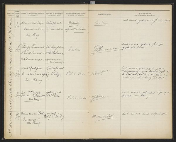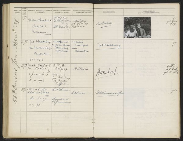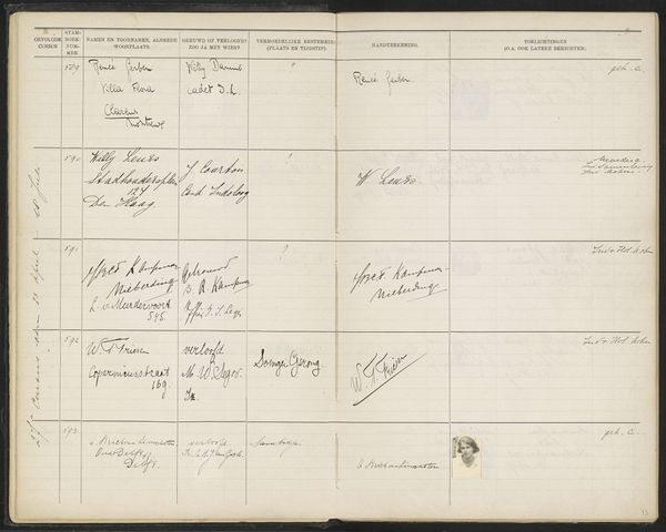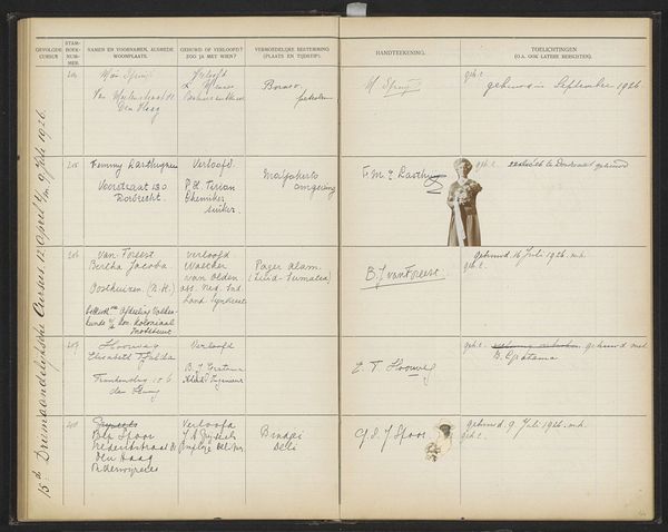 This is page 19 from the register of students at The Colonial School for Girls and Women in The Hague, likely dating from the 1920s. The school played a significant role in the Dutch colonial project, training women to become wives and mothers in the Dutch East Indies, now Indonesia. The ledger, handwritten with careful annotations, lists names, addresses, and marital status, offering a glimpse into the lives of these women and the expectations placed upon them. We can see visual codes in the way information is recorded, reflecting the institutional structure and colonial agenda of the time. The school aimed to prepare women for a specific social role, reinforcing colonial power dynamics. As historians, we can analyze these records alongside other sources, such as curricula, personal letters, and photographs, to gain a deeper understanding of the school’s impact and the experiences of the women who attended it. Art like this reminds us that meaning is not fixed but is actively created and reshaped by historical forces.