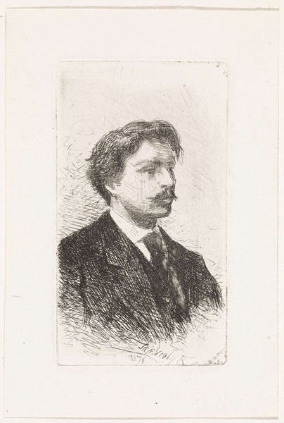 Jan Veth made this portrait of the writer Frederik Willem van Eeden using black chalk, a medium that lends itself to intimate and informal portraiture. This image comes to us from the Netherlands, a place with a rich tradition of portraiture, particularly during the Dutch Golden Age, when artists like Rembrandt and Hals captured the likenesses of merchants, civic leaders, and other members of the burgeoning middle class. By the late 19th century, when Veth was working, portraiture had become a well-established genre within the institutional framework of art academies and salons. It had also become a way to immortalize leading cultural figures. What makes this portrait interesting, however, is the way Veth uses a soft, almost impressionistic style to depict van Eeden. This suggests a shift away from the more formal, academic styles of the past and towards a more modern, individualistic approach to portraiture. To understand this artwork, we might look at exhibition records, reviews in art journals, and other archival materials. Art is contingent on the social conditions of its making, as are our understanding of it.