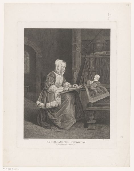 Luigi Rados made this print of Alberto Fortis sometime after 1773. It depicts the writer in his study, surrounded by the accoutrements of intellectual life. Rados was working in a period where printmaking served as a vital means of circulating images and ideas, forming public opinion. This print, in particular, hints at the power and status of writers and intellectuals in late 18th-century society. The setting is domestic, yet the figure of Fortis takes centre stage, alluding to a bourgeois class, with their private libraries, which enabled the production of new thinking. The window and the books represent knowledge and progress, but Fortis is well-dressed and is in a comfortable setting, suggesting that these privileges were reserved for a select few. To fully appreciate this print, it is useful to delve into the social and intellectual history of the period. By looking at publications and letters from the time, we can gain a deeper understanding of the role images played in shaping cultural values.